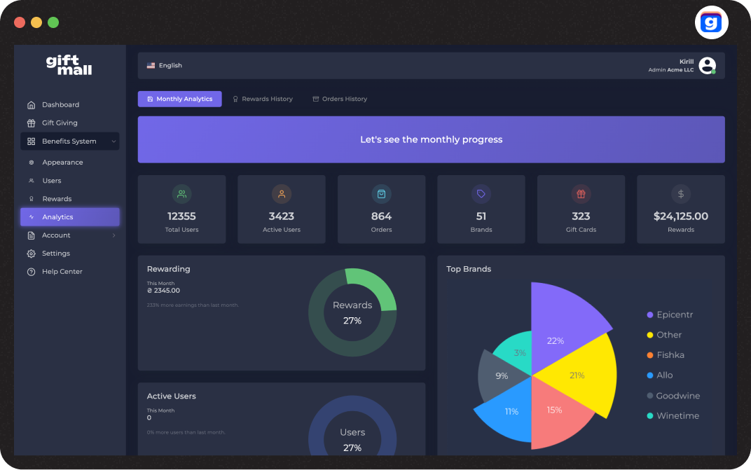 Add users, customize your brand page, assign points, or instantly send rewards. Track your balance, order history, and use analytics to measure the effectiveness of your engagement with employees, clients, and business partners